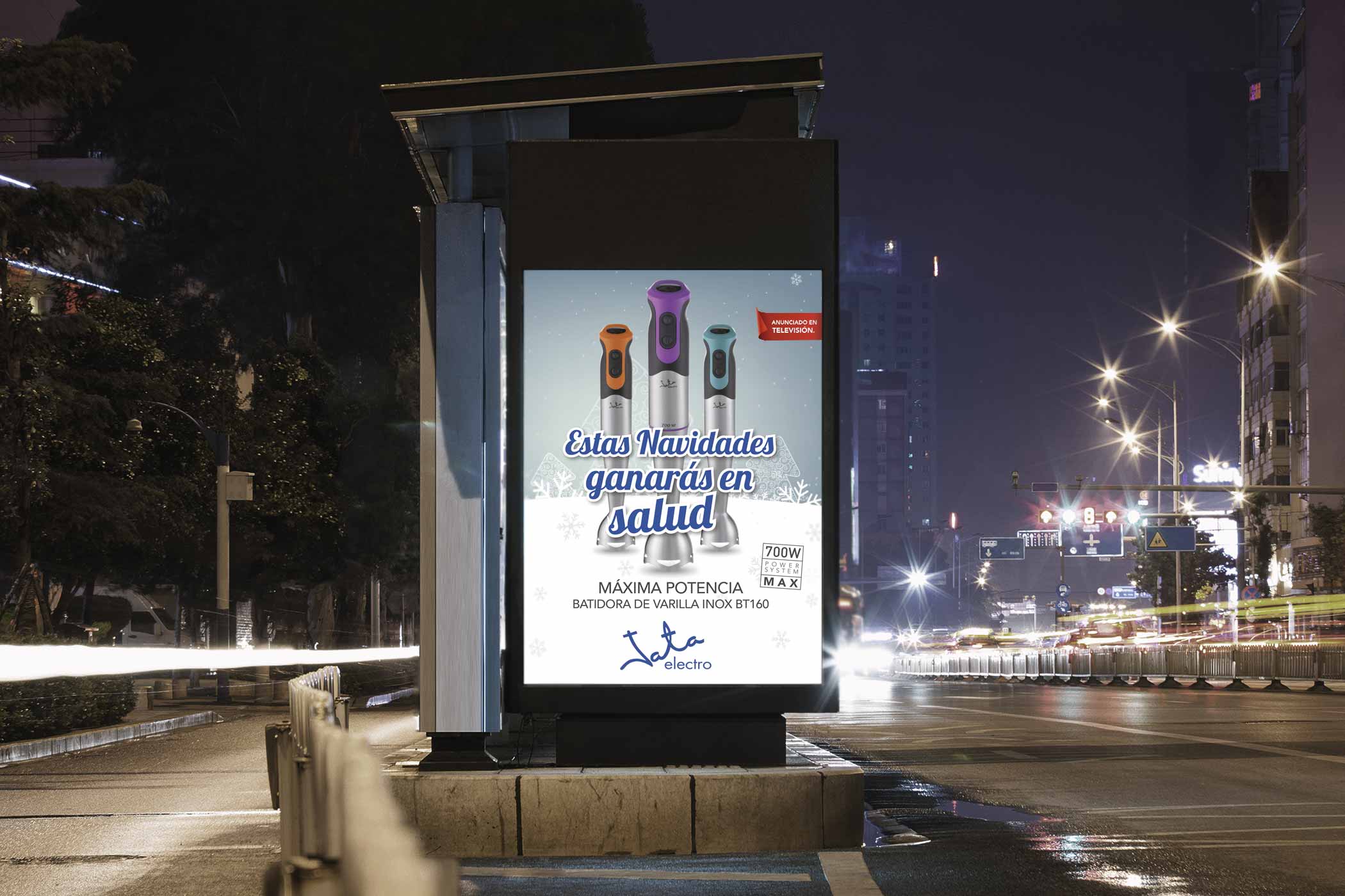 El encargo era sencillo, pero el objetivo algo más complicado, si además contamos con que había que reforzar y mejorar la percepción y brandfeeling en el mercado, fortalecer los vínculos de cercanía y, además, debía vender. Después de estudiar el caso, emprendemos el proyecto reforzando y mejorando la percepción y brandfeeling en el mercado, integrando y plasmando todo ello con coherencia en la pieza clave de campaña: los spots para TV y salas de cine. Lo conseguimos. Lanzamos una imagen diferente a la proyectada hasta ahora. En 20’’ proyectamos una imagen fresca, alegre, joven y tecnológica centrada en los productos estrella de Jata Electro, dejando atrás el famoseo para comenzar una nueva andadura con nuevo estilo: un vida saludable es más sencilla con Jata.